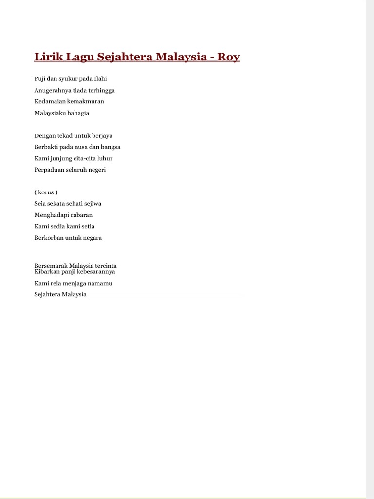 Lirik Lagu Sejahtera Malaysia Pdf